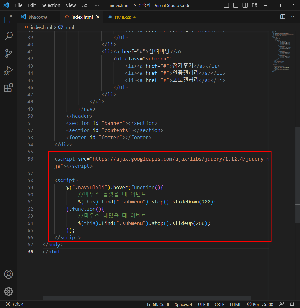 | 비주얼 스튜디오 코드 20_ 연꽃축제 예제 _ footer (0) | 2023.06.09 |