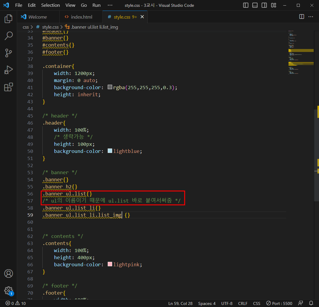 /* ul의 이름이기 때문에 ul.list 바로 붙여서써줌 > ul태그 생략가능 */