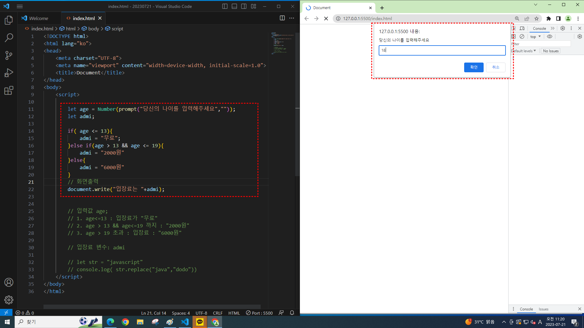 let age = Number(prompt("당신의 나이를 입력해주세요",""));